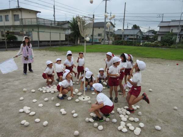 今日は全体で「運動会」の練習で“玉入れ”と“かけっこ”をしました。