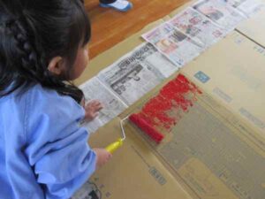 大きな物なので、ローラーを使って塗っていたのですが