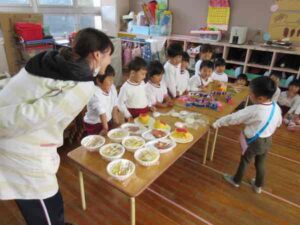 今日のはな組さんは「お店屋さんごっこ」の練習をしていました。