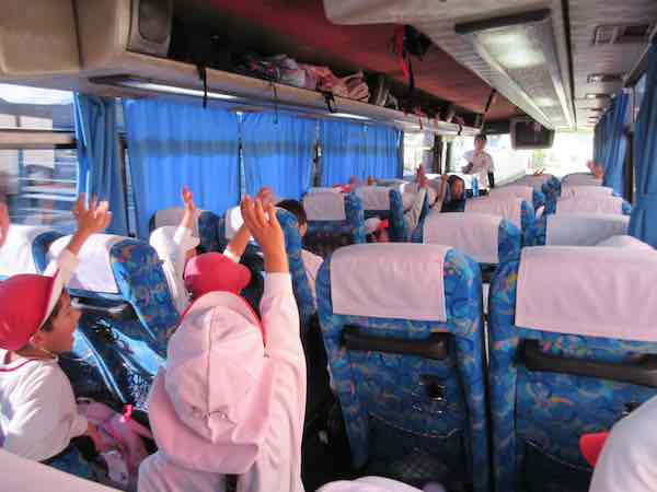 バスの中では、先生たちが準備してくれたゲームで楽しみ