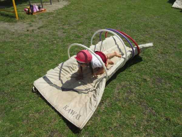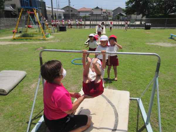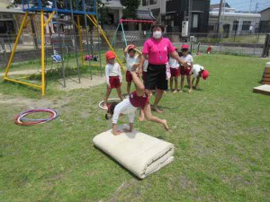 つき組さんも「体育教室」で“ブリッジ”や“側転”に挑戦していました。