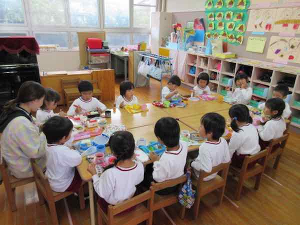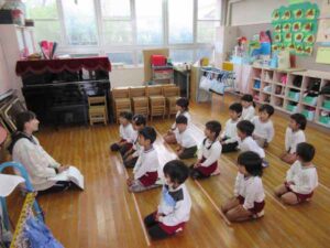 全体のクラスを異年齢で混ぜて、3クラスに分けての保育です。