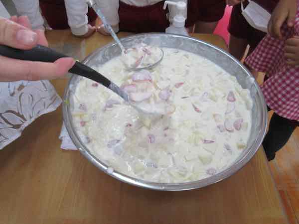 一人ずつ、果物を切ってヨーグルトと混ぜて作ったのですが
