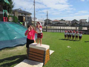 ほし組さんは「飛び込み前転」に取り組んでいました。