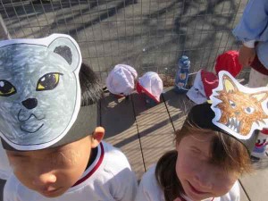 こちらは、園児が用意してくれた“黒ヒョウ”と“オオカミ”のお面を使って