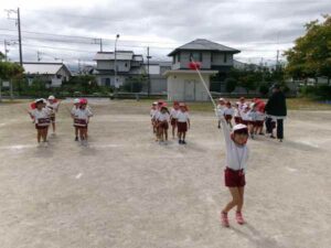 今日は全体で運動会の「入場行進」の練習を行っていました。