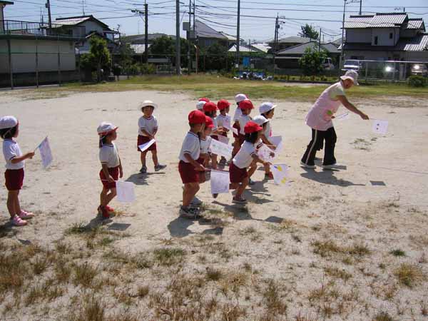 広場で運動会での「かけっこ」の練習をしていました。