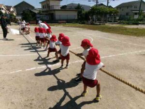 運動会の競技を、道具の繰り出しなども含めて練習しました。