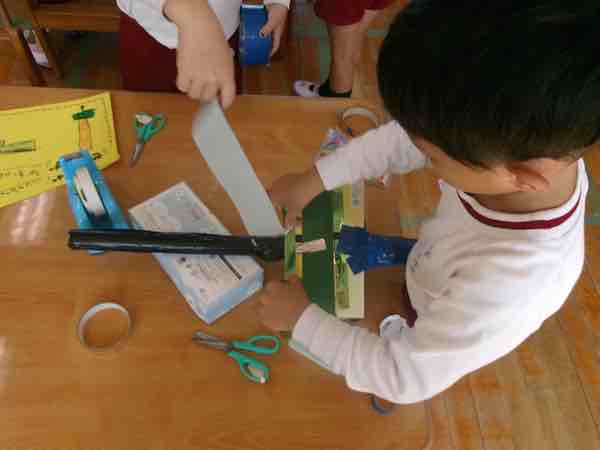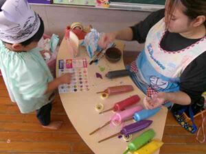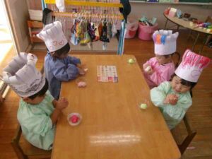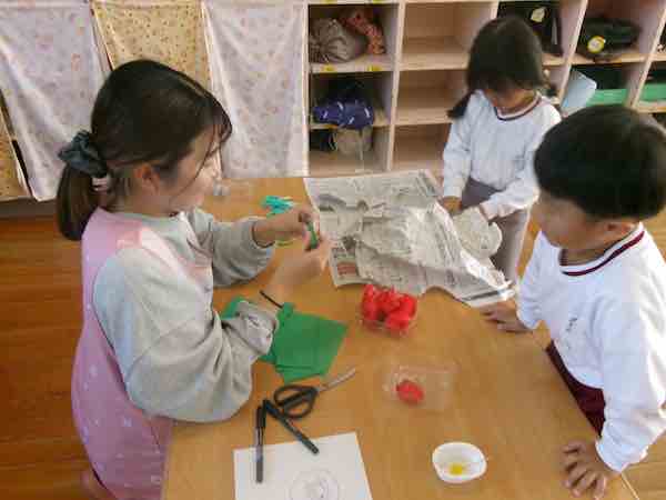 それから、今日は各クラス「お店屋さんごっこ」の品物作りをしていました。