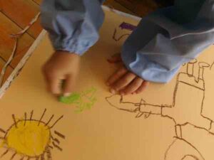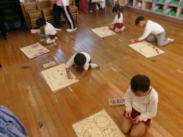 今日は先日行った「芋掘り」の思い出画を全クラス描いていました。