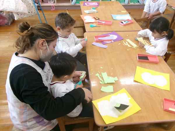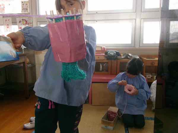 また、空いた時間には、年長さん毎年恒例の「マフラー作り」も楽しんでいました。
