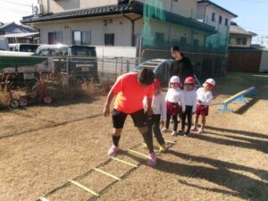 今日は「つま先立ち」でジャンプすることにも取り組んでいて、
