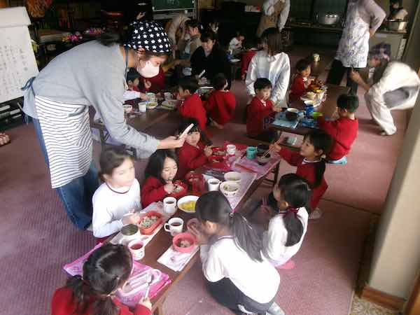 役員さん手作りのご飯をみんなで一緒に頂きます。