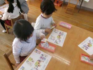 ほし組さんも「ちのうあそび」で“どうさのえあわせ”という課題でした。