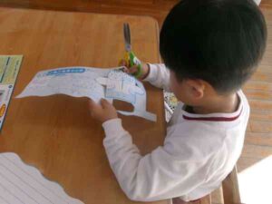 ハサミ・のり・クレヨンを使う課題なのですが、