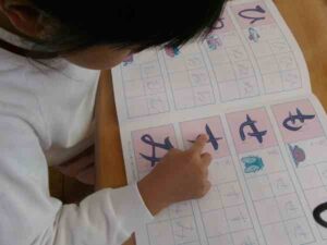 ひらがなの練習では、書き順を覚えるために何度も指でなぞってから