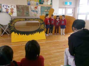 年長つき組さんの「ことば劇」を見させてもらいました。