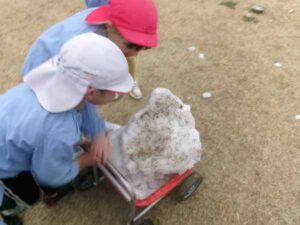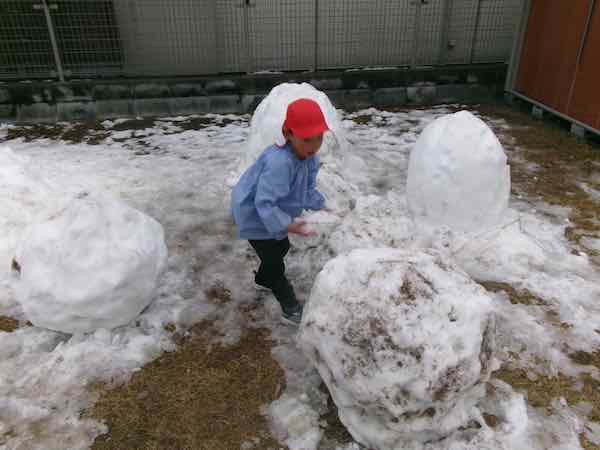 日陰を中心に残っていた雪で、たっぷりと雪遊びを楽しんでくていました。