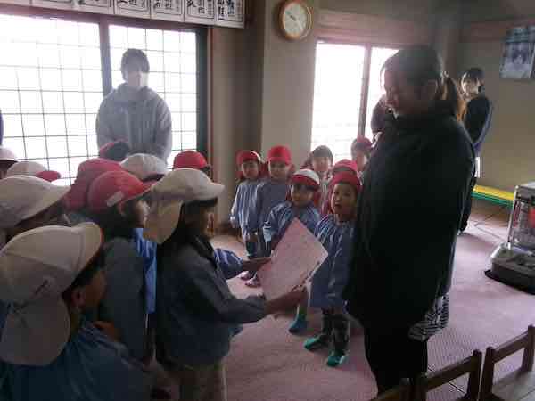 つき組さんが先生たちに「感謝状」を渡してくれました。