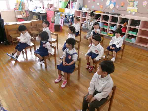 年少はな組さんは、朝の会にしっかりと椅子に座って参加してくれていました。
