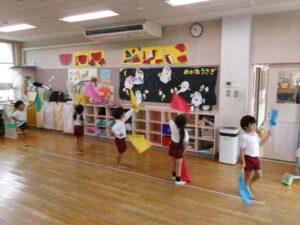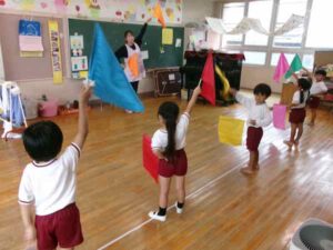 ほし組さんは「運動会」の“お遊戯”の練習でした。