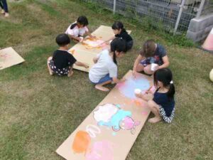 「お楽しみ会」では“絵の具遊び”と“金魚すくい”をとっても楽しそうにしてくれていました。