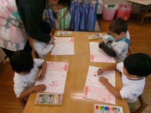 綺麗に塗りつぶせる子・色にムラがある子などがいたので、