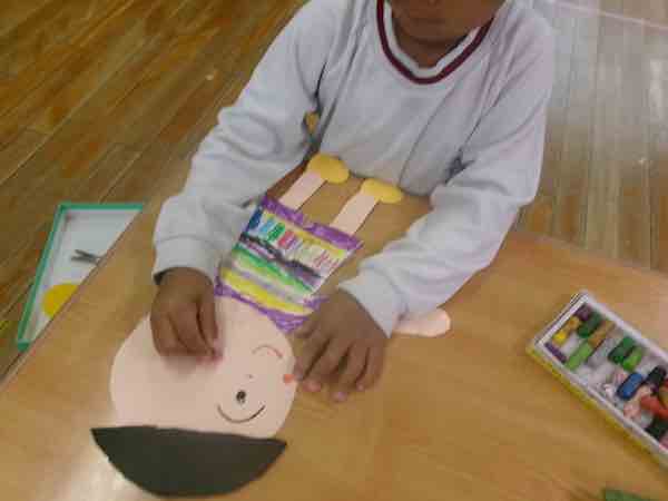 クレヨンで服や顔を描いたのですが、
