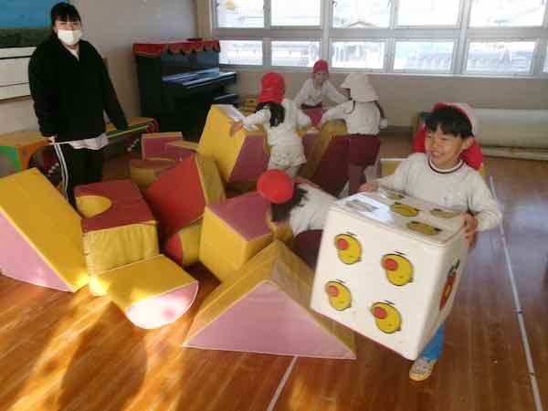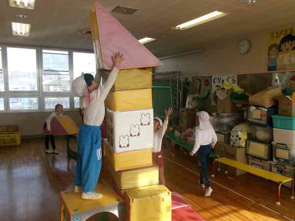 つき組さんも「お楽しみ会」で、大型ブロックを使って遊んでいました。