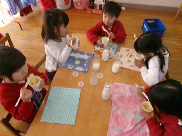 違うクラスのお兄さんお姉さんたちと食べられたことも嬉しかったようです。