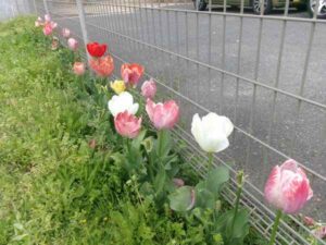 芝生も青くなり、逆にチューリップが終わりに近づいてきました。