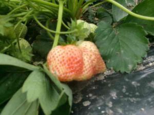 イチゴも徐々に色づいてきて、もう少しで食べられるのではないかと思います。