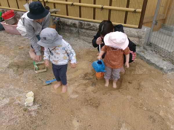 今日のゴリラ保育園は「泥遊び」をしていました。