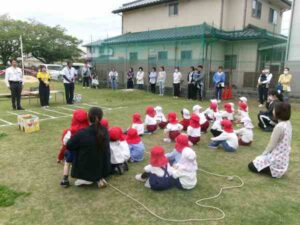 幼稚園は保護者にも参加いただいての「交通教室」でした。